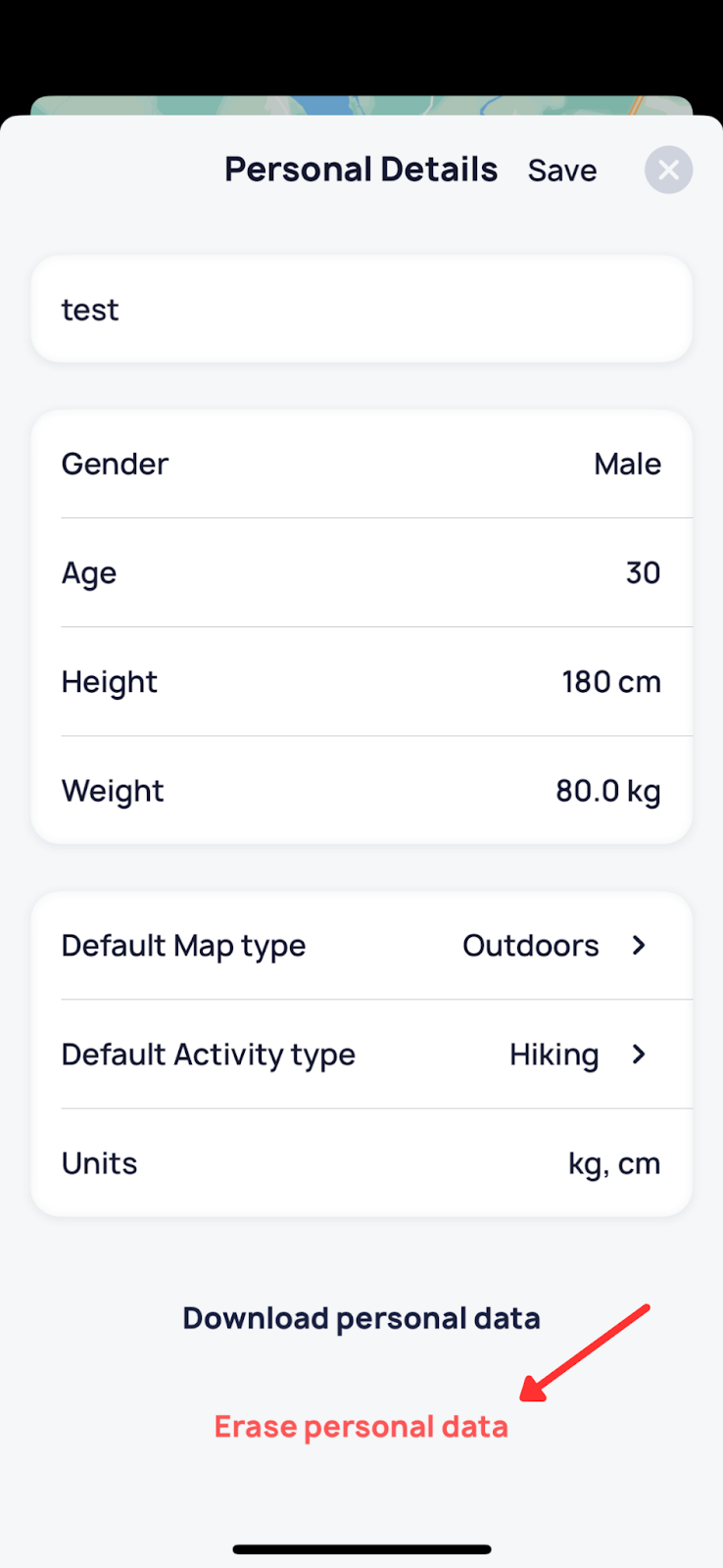 3. Select the “Erase personal data” option: